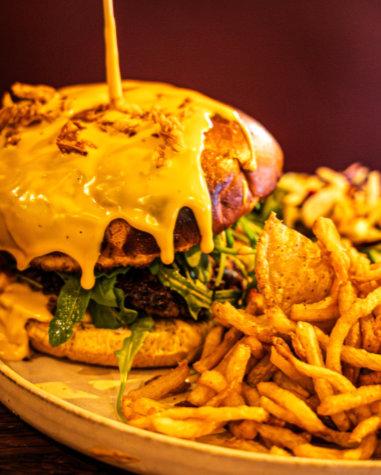 On mange des burgers Poulet, burgers Smash ou Végétarien. Il a aussi la pizza Texas, la Royale, etc...